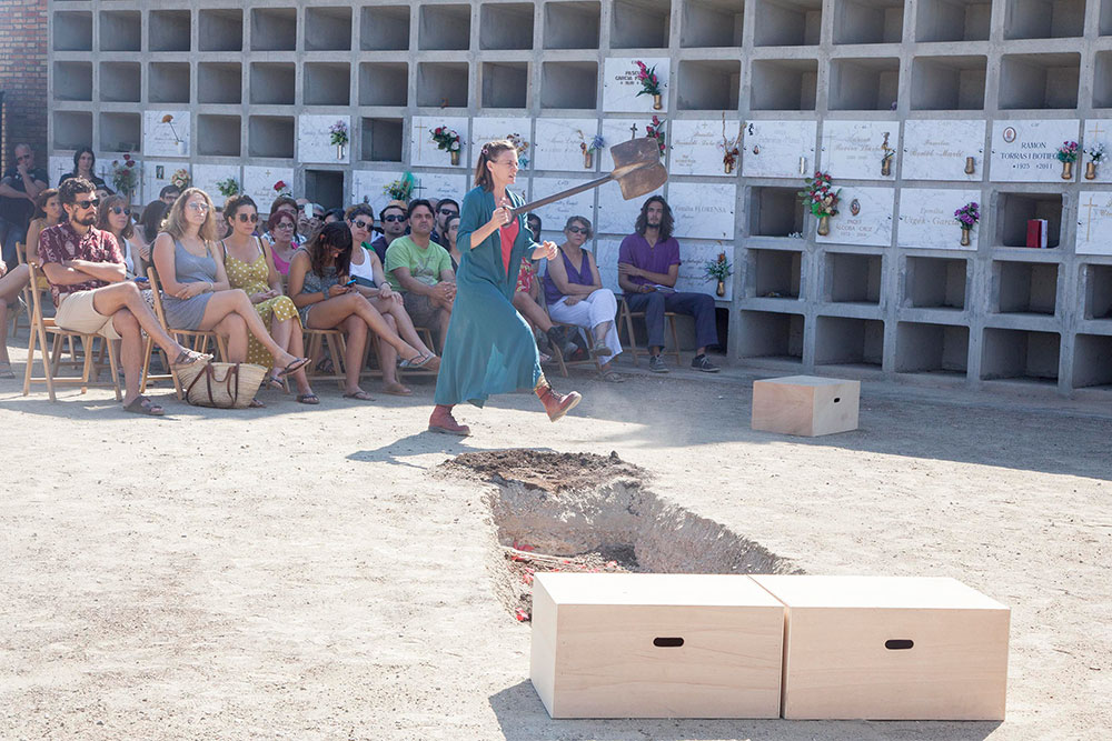 No ho vaig fer per l'escenari previst sinó per la temàtica de l'obra, ja que la recuperació de la memòria històrica és un tema que m'atrapa. El respecte i la sensibilitat amb els quals Duran em parlava d'aquesta peça escrita pel dramaturg mexicà Antonio Zúñiga en homenatge als dos brigadistes internacionals que reposen al cementiri de Tàrrega i les restes dels quals van ser exhumades recentment no em va fer dubtar ni un sol moment que la volia veure. No us podeu arribar a imaginar la meva sorpresa en veure el debat generat a les xarxes socials pel fet que FiraTàrrega plantegés representar un espectacle al cementiri municipal!