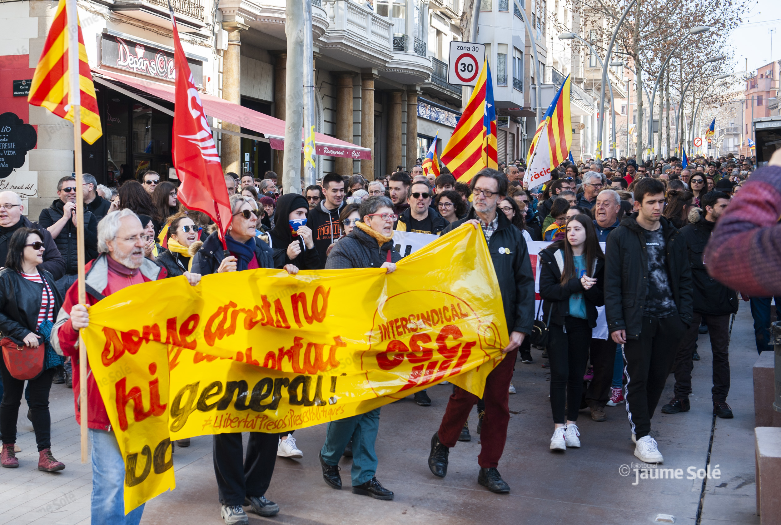 Més d'un miler de manifestants es van concentrar a la plaça Riambau, on a les 11 va començar la marxa que va recórrer els carrers de la ciutat i va acabar a la plaça del Carme. Durant el trajecte, al qual s'hi va anar afegint gent, els manifestants, vinguts d'arreu de la comarca, van cridar consignes a favor dels líders independentistes i en contra de la justícia espanyola. En cloure el recorregut de la manifestació, a la plaça del Carme, va tenir lloc la lectura d'un manifest en defensa dels drets socials i laborals, i de denúncia contra el judici del procés i exigint la llibertat dels presos polítics.