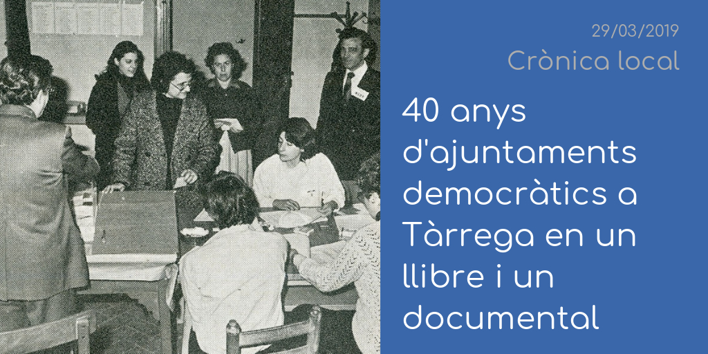 Aquesta setmana obrim Crònica Local explicant què prepara l'Ajuntament de Tàrrega per commemorar els 40 anys d'ajuntaments democràtics a la ciutat.