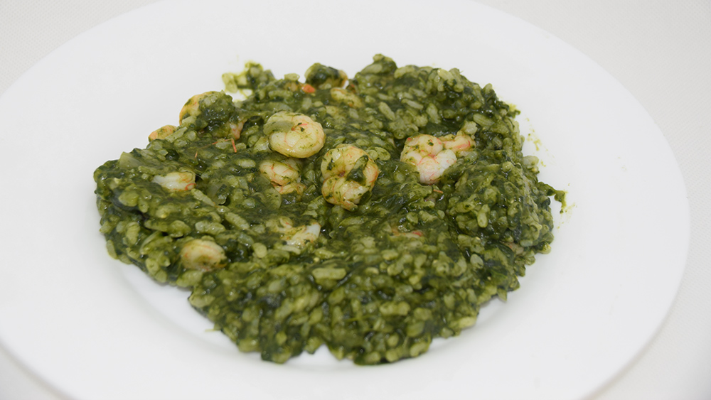 Risotto d'espinacs i gambes, una estratègia atractiva per menjar verdures de fulla