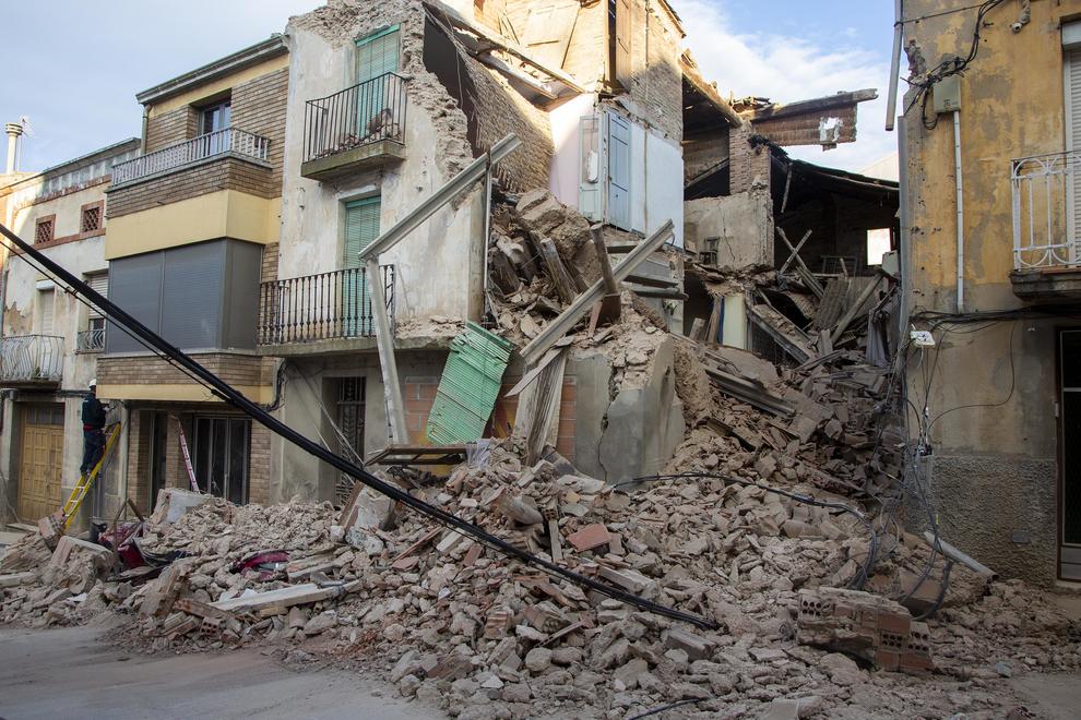 Una casa okupada al centre de Bellpuig s'esfondra de matinada sense causar ferits