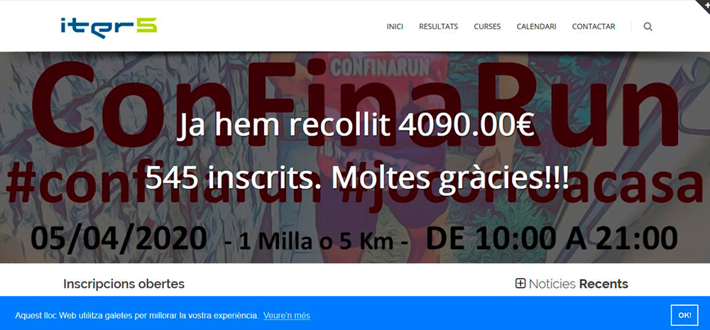 A tots ells cal afegir-hi el mig miler de corredors que, a hores d’ara, ja s’han inscrit a la #ConFinaRun, concretament 545 participants a les 17.00 hores, amb la qual cosa la xifra recaptada s’eleva ja a 4.090 euros, motiu pel qual des de l’organització es vol agrair públicament aquest suport incondicional.