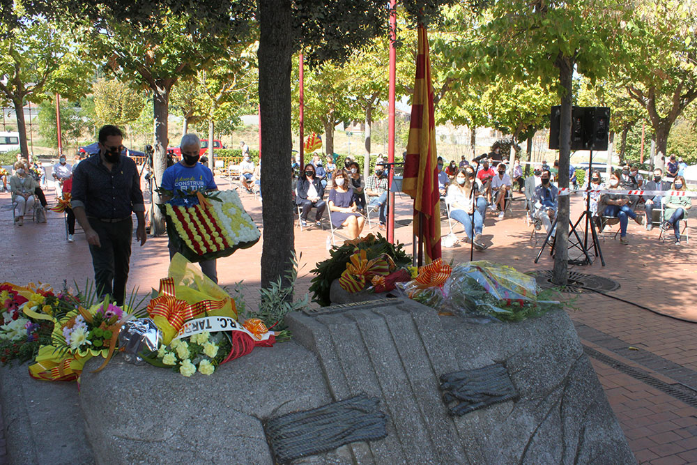 Una vintena d’entitats van respondre a la crida. Sumant autoritats, teixit associatiu i públic situat al voltant de la plaça, l’esdeveniment va congregar una vuitantena de persones. L’alcaldessa Alba Pijuan Vallverdú i representants de tots els grups de l’arc consistorial (ERC, CUP, PSC i Junts per Tàrrega) van obrir l’acte amb la tradicional ofrena floral al monument dedicat als Màrtirs de l’Onze de Setembre del 1714. En el seu discurs, l’alcaldessa va rememorar la figura del President Lluís Companys -"un dels grans defensors de la nostra pàtria"- amb motiu del 80è aniversari del seu afusellament per part de la dictadura franquista. La primera edil també va citar uns emotius versos que Manuel de Pedrolo dedicà a Companys l’any 1970. Durant la seva al·locució, l’alcaldessa va denunciar "la injusta situació que viuen els nostres presos polítics i exiliats" i va finalitzar amb una proclama en favor de la República Catalana.
