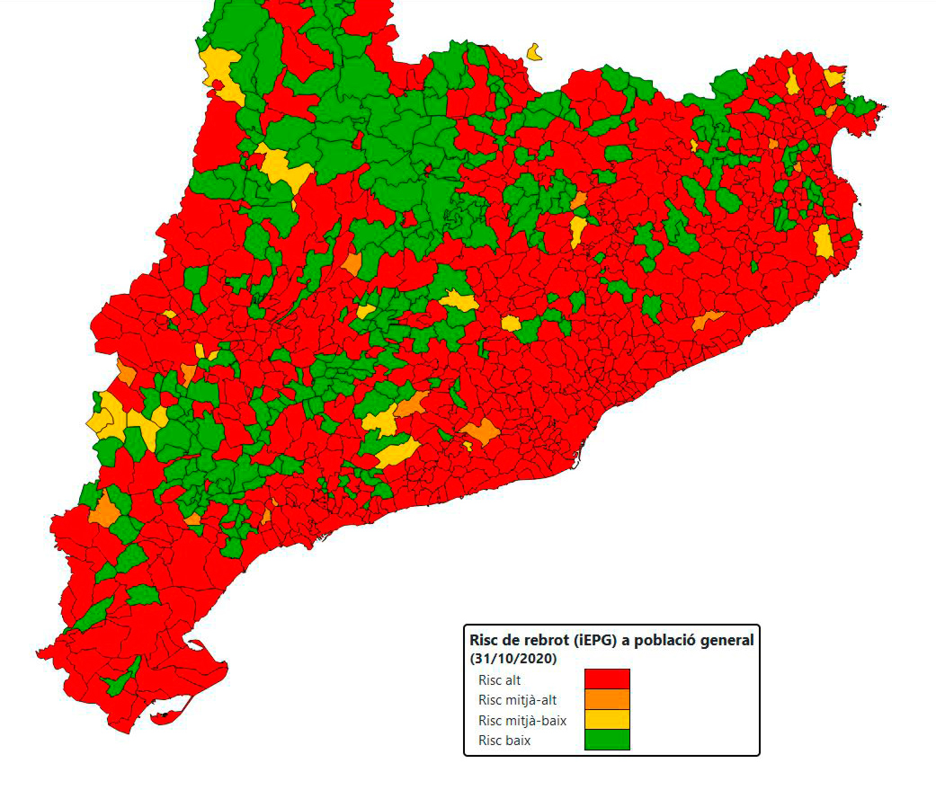 Pel que fa a la ciutat de Tàrrega, que acumula 618 casos des de l'inici de la pandèmia, el risc de rebrot es manté al mateix nivell que la darrera setmana. Avui se situa en 824,73 punts (ahir 846,36), una mica per sota del sostre màxim al qual va arribar divendres de la setmana passada (949,99) mentre la Rt segueix la tendència a la baixa que va iniciar el dia 30. Avui és d'1,07 (ahir 1,12).
