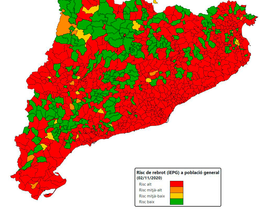 Els municipis amb els pitjors índexs aquest divendres són Ossó de Sió (amb un perill de rebrot de 1.702,93), Maldà (de 1.465,2) i Verdú (de 1.402,73), totes tres poblacions amb un risc extrem, per sobre de mil. Ara bé, trobem poblacions com Bellpuig i Anglesola que, com Tàrrega ciutat, tenen més de 800 punts de perill de rebrotada. Per contra, el mapa del portal Dadescovid.cat situa en verd, és a dir, sense perill de rebrot, són Puigverd d'Agramunt, Preixana, Nalec, Vallbona de les Monges i Guimerà.