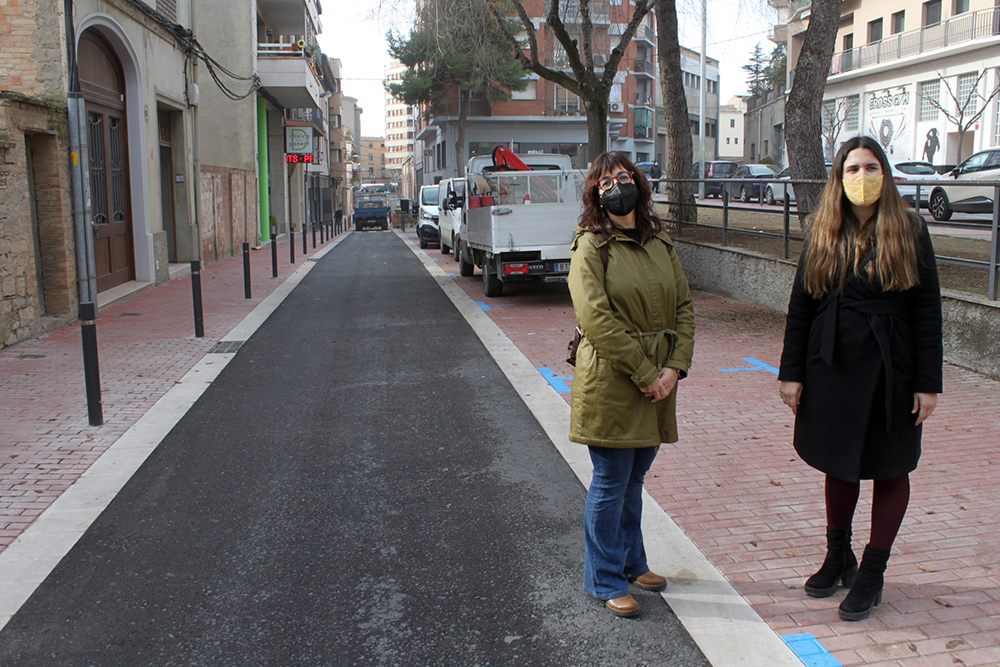 La Regidoria d’Urbanisme ha refet el carrer de forma integral. Així, a més de renovar tota la superfície també s’han substituït les xarxes de serveis bàsics al subsòl: clavegueram, evacuació d’aigües pluvials, connectivitat i subministrament elèctric. El vial presenta una nova fesomia, en la qual destaca l’eliminació de les barreres arquitectòniques. La calçada, les voreres i l’espai destinat a estacionament de vehicles es disposen ara a un sol nivell. Els vianants guanyen espai ja que la vorera, delimitada amb pilones, s’ha eixamplat al llarg del vial amb diferents amplades. Els paviments són de diferents materials: el carril de la calçada és una capa asfàltica flanquejada per lloses blanques mentre que la resta de la superfície consta de llambordes vermelles de formigó, amb una estètica similar al carrer de Comabruna, situat a la mateixa zona.
