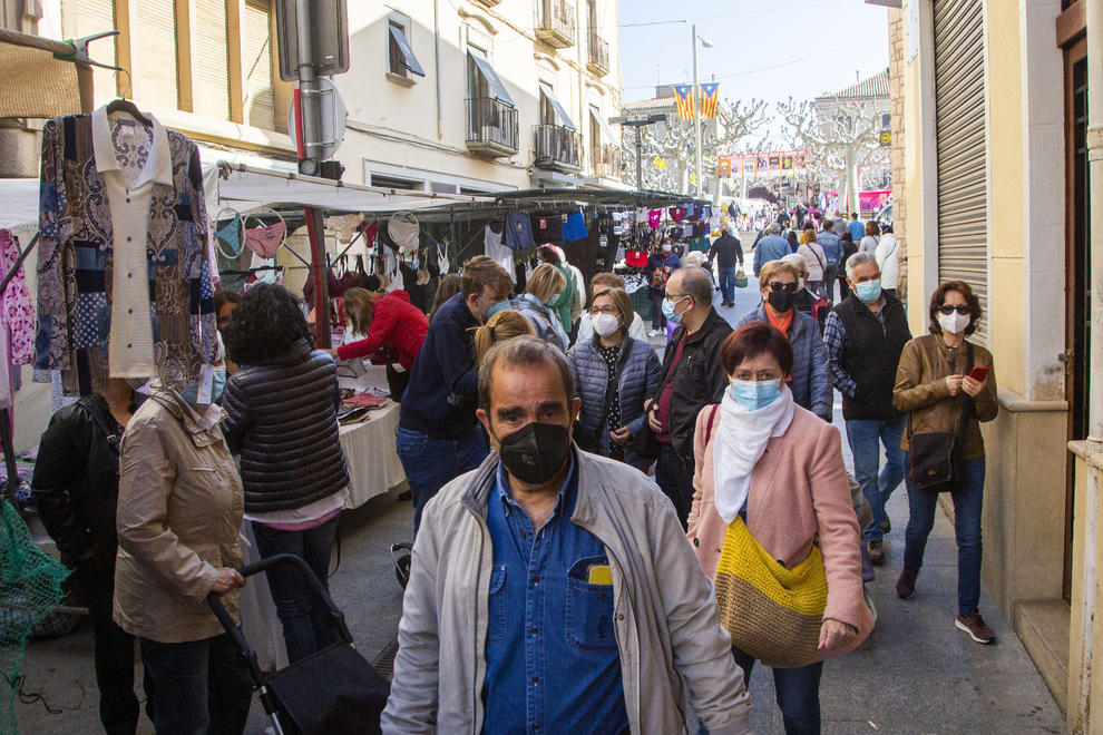 Tàrrega va celebrar ahir el seu mercat setmanal, malgrat ser festiu, i va estar molt freqüentat. Van ser molts els que van aprofitar per comprar aliments i recollir la mona de Pasqua. No obstant, hi havia entre un 60 i un 70% de les parades habituals. Així mateix, bona part dels comerços van optar per mantenir abaixada la persiana.