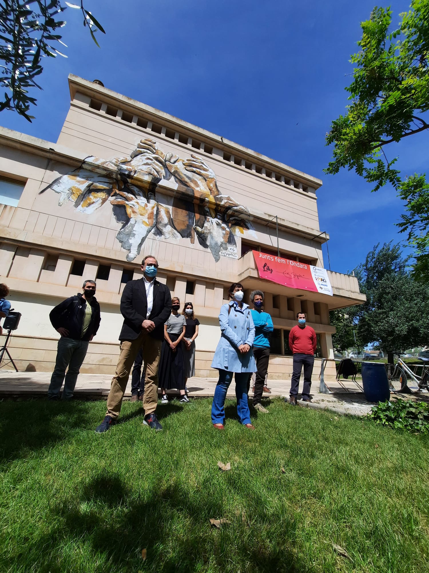 El mural Junts fem l'Ondara que lluu a la façana de l’Escola d’Art i Superior de Disseny Ondara de Tàrrega, realitzat conjuntament entre la comunitat educativa de l'escola amb la col·laboració dels artistes Lily Brik i Erik Schmitz, s'ha inaugurat oficialment aquest matí.