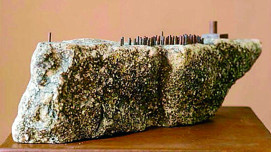 Algunes de les obres que vam veure a la seva retrospectiva que va córrer per Ponent ens van impactar especialment, ja que semblaven maquetes d'instal·lacions, amb petits elements de ferro damunt de pedres senzilles de marges, fent monumentals els objectes trobats a la natura. Les seves peces les fa amb molt poca intervenció sobre les matèries, amb una abstracció pura i respecte total a la base, que és la que mana, agermanant escultura i naturalesa.
