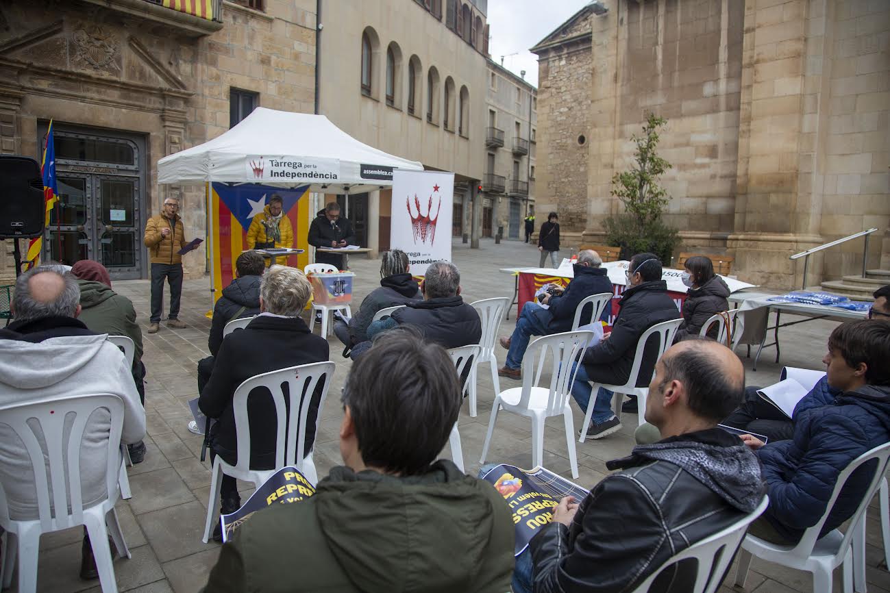 Tàrrega per la Independència ha organitzat avui la seva tradicional concentració mensual a la plaça Major per dir 'Prou repressió'. Des de l'assemblea local de l'ANC han criticat que cada dia hi ha més persones detingudes i jutjades i han lamentat que ni el govern ni els partits no fan res al respecte.