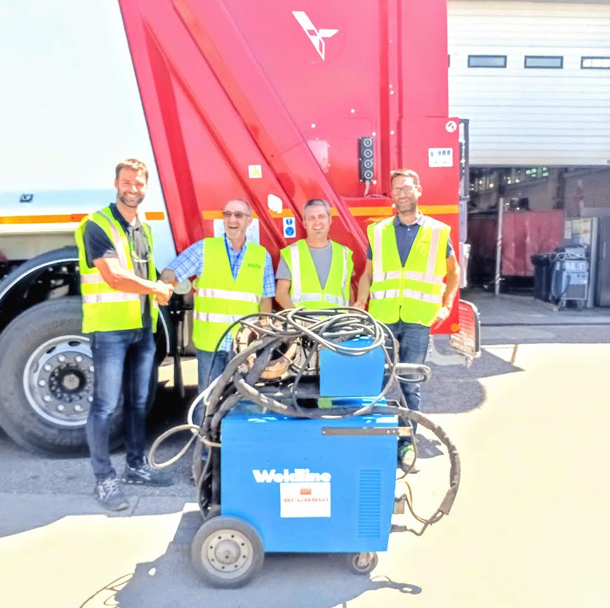 A la imatge adjunta, el moment que Jordi Cava, responsable de PRL de Ros Roca, i Marc Sendrós, responsable de fabricació de Ros Roca, fan el lliurament d’una màquina de soldar a Xavier Rossell, regidor d’Educació i Treball, i a Manel Garriga, director del Centre La Solana de l’ajuntament de Tàrrega.