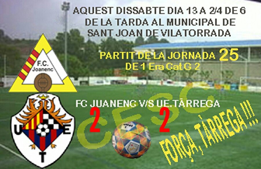 El Tàrrega va empatar dissabte passat (2-2) davant del Joanenc en un partit que dominava al descans per 0-2, amb els gols d’Ilyass i de Belekber, i que va desaprofitar en permetre que l’equip local igualés el matx a la segona part. Amb aquest resultat, els de l’Urgell van perdre l’oportunitat de retallar punts en la classificació, ja que l’enfrontament era amb un rival directe en la lluita per la permanència, i segueixen en la penúltima posició a vuit punts de la salvació.