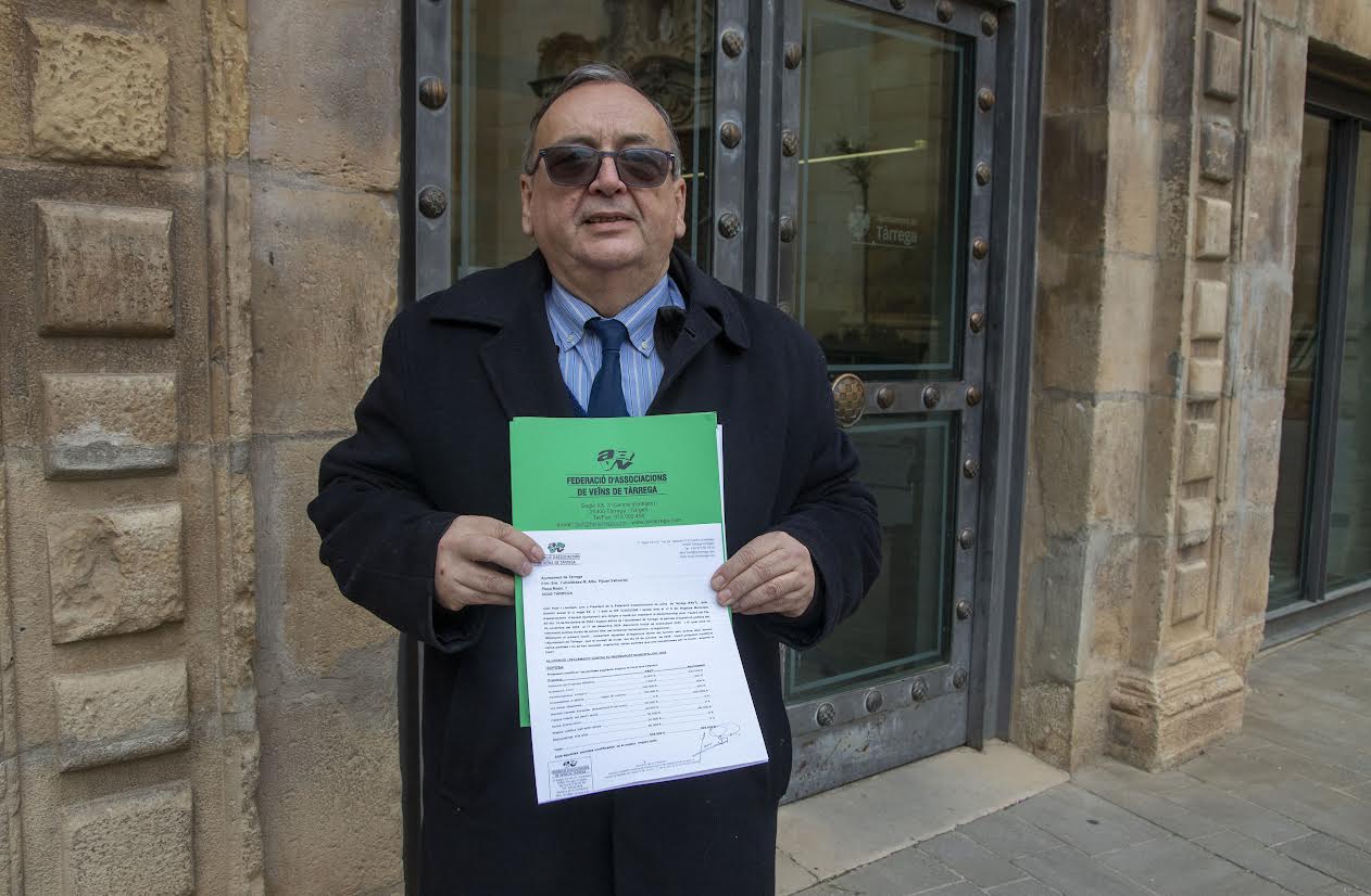 La Federació d’Associacions de Veïns de Tàrrega (FAVT) ha presentat aquest dimecres al·legacions al pressupost municipal de l’Ajuntament de la capital de l’Urgell per al 2025. El seu president, Joan Pujal, ha explicat que proposen modificacions de partides per un import total de 525.500 euros, entre les quals destaca suprimir el projecte de primera fase de la via verda fins a Vilagrassa i destinar aquests 200.000 euros a pavimentacions així com rebaixar la partida de redacció de projectes de 230.000 euros fins a 8.500 i destinar 100.000 euros a millorar l’accessibilitat; 50.000 euros a instal·lar més marquesines a les parades del bus urbà, 25.000 euros a construir lavabos públics amb rampa al Pati i 40.000 euros per a parcs infantils per als barris de Sol Ixent i la Plana. A més, proposa reduir la partida d’hores extra de 95.000 a 50.000 euros i incrementar la subvenció a la FAVT de 500 a 2.000 euros així com destinar 50.000 euros a enrajolar la rambla del Canalet.