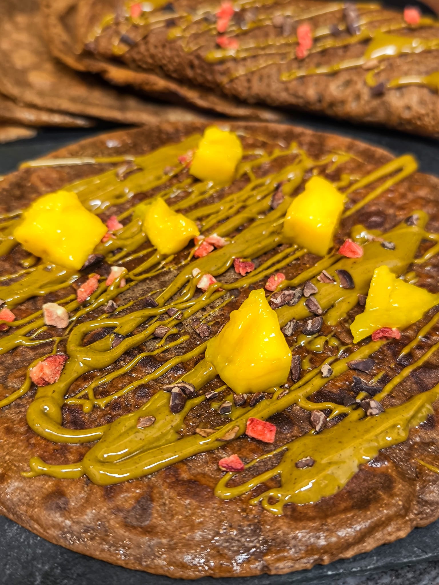 Es barregen tots els ingredients amb l’ajuda d’una batedora. Seguidament es posa una mica d’oli d’oliva a la paella i quan aquesta està calenta, s’hi tira un cullerot de la massa que hem fet. Quan estigui cuita d’una banda, se li dona el tomb i es deixa coure de l’altra banda. Un cop cuita, es pot farcir del que més ens agradi (avellanes picades i plàtan a rodanxes, etc.) i un cop ple, ho dobleguem dos cops per la meitat, obtenint una forma triangular. Podeu anar repetint el procés per fer més creps. Bon profit.