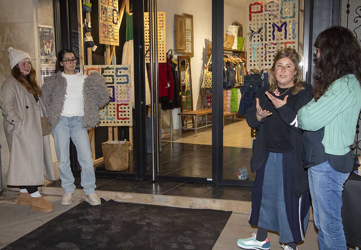 Amb la finalitat de visibilitzar la marca i el seu compromís amb el medi ambient mantenint els recursos dins del cicle, disminuint la necessitat d’extreure noves matèries primeres verges, dissabte van presentar el nou aparador del seu taller situat al carrer Major de Tàrrega, que va ser obra dels alumnes que cursaven quart del grau de Disseny a l’ESDAPC a l’Escola Ondara de la capital de l’Urgell el curs passat. El projecte, titulat Vaya telas!, es va plantejar com una caixa negra nua amb fons obert per visibilitzar el taller des del carrer amb diferents escenes (bosses, faldilles...) organitzades en uns plafons perforats mòbils amb múltiples funcions. Els plafons utilitzen teles per reforçar l’aparador amb paraules vinculades a la filosofia de la marca. Lluïsa Gabarra, portaveu d’Upcycled Cartaes, va posar en relleu aquestes sinergies mentre que des de l’Escola Ondara van assenyalar que va ser el seu primer projecte real, fet que van agrair moltíssim.