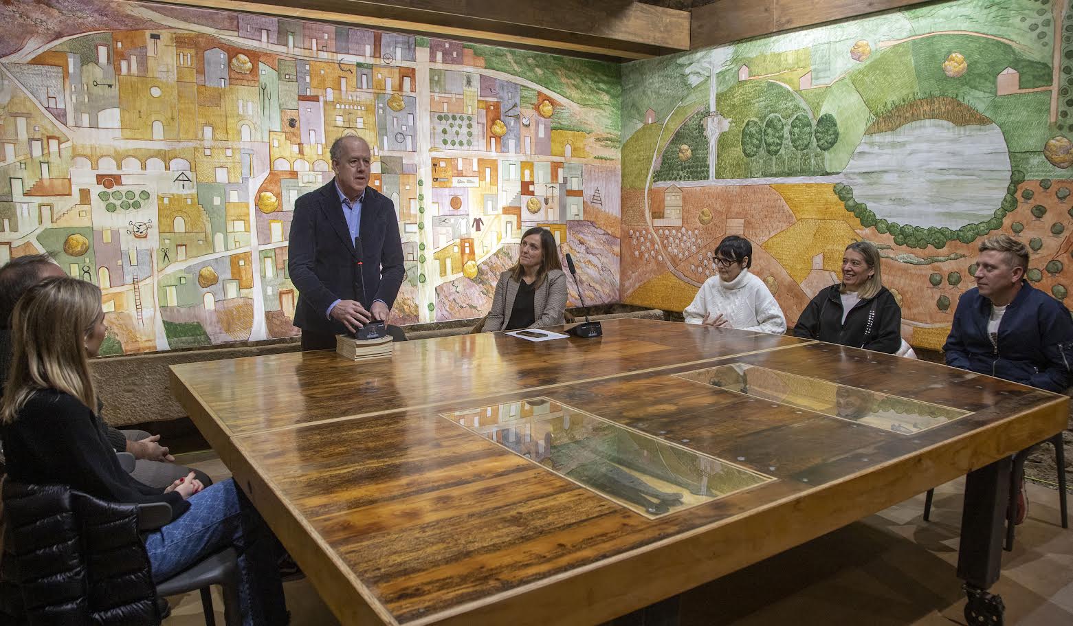 Per la seva part, l’artista va indicar que “l’obra, de 18 metres quadrats, ofereix múltiples mirades del poble” i “l’objectiu és que serveixi per recordar, pensar, emocionar-se i explicar”, ja que integra bona part de la història d’Anglesola.