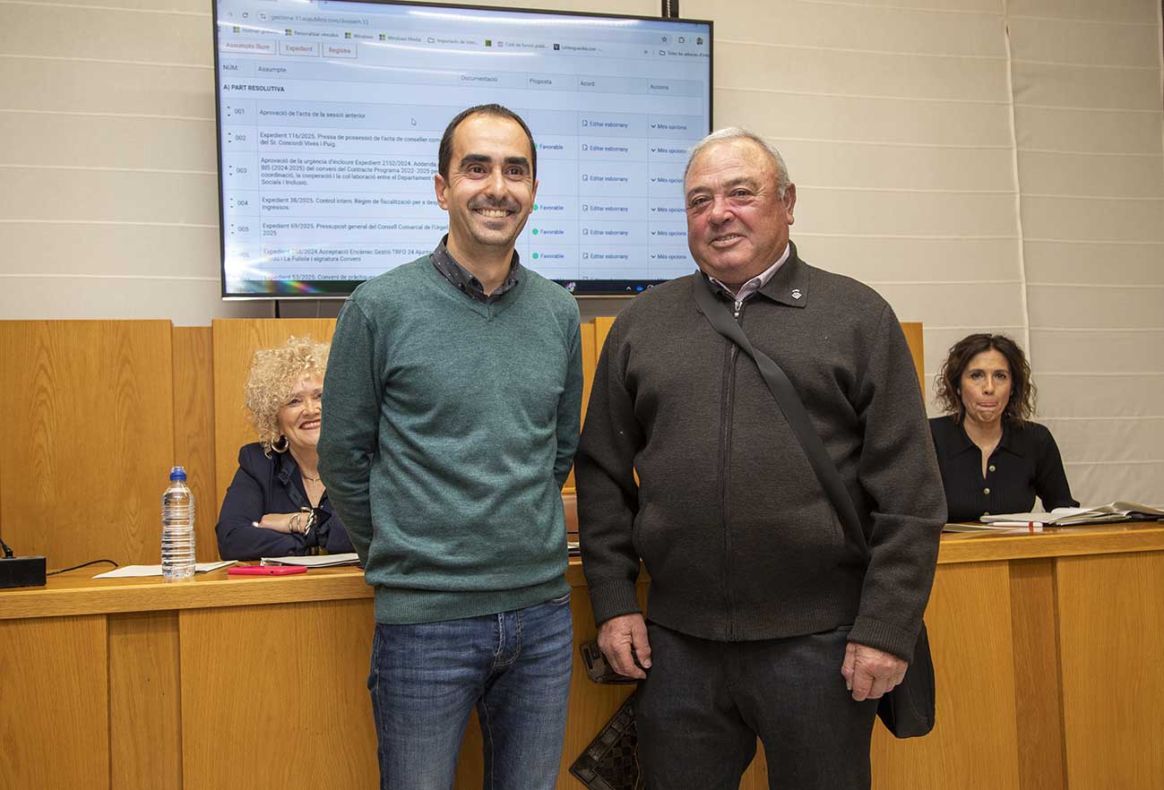 A la sessió també va prendre possessió del càrrec el nou conseller comarcal del PSC, Concordi Vives –edil de Nalec-, en substitució de Silveri Caro, que va deixar el càrrec per motius personals.