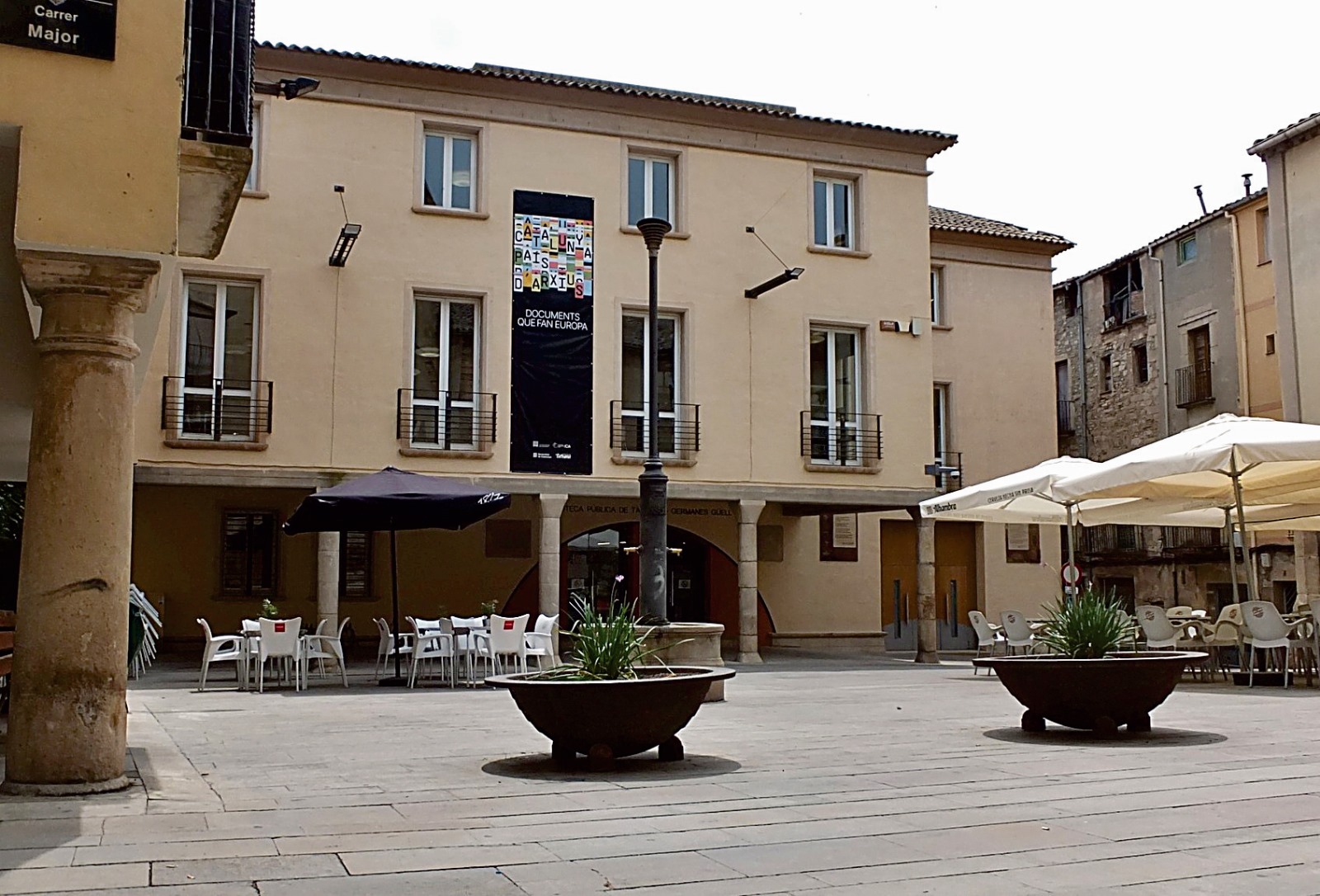 Segurament haureu vist una pancarta penjada a la façana de la Biblioteca Pública Germanes Güell, que es troba a la plaça Sant Antoni i prop de l’Arxiu Comarcal, amb el lema Catalunya país d’arxius. En voleu sabeu el motiu? Des del dia 9 de juny, Dia Internacional dels Arxius, i fins al Congrés Internacional que se celebrarà a Barcelona el mes vinent, els arxius catalans acompanyem qualsevol acte i activitat que gira al voltant del patrimoni documental amb aquest reclam.