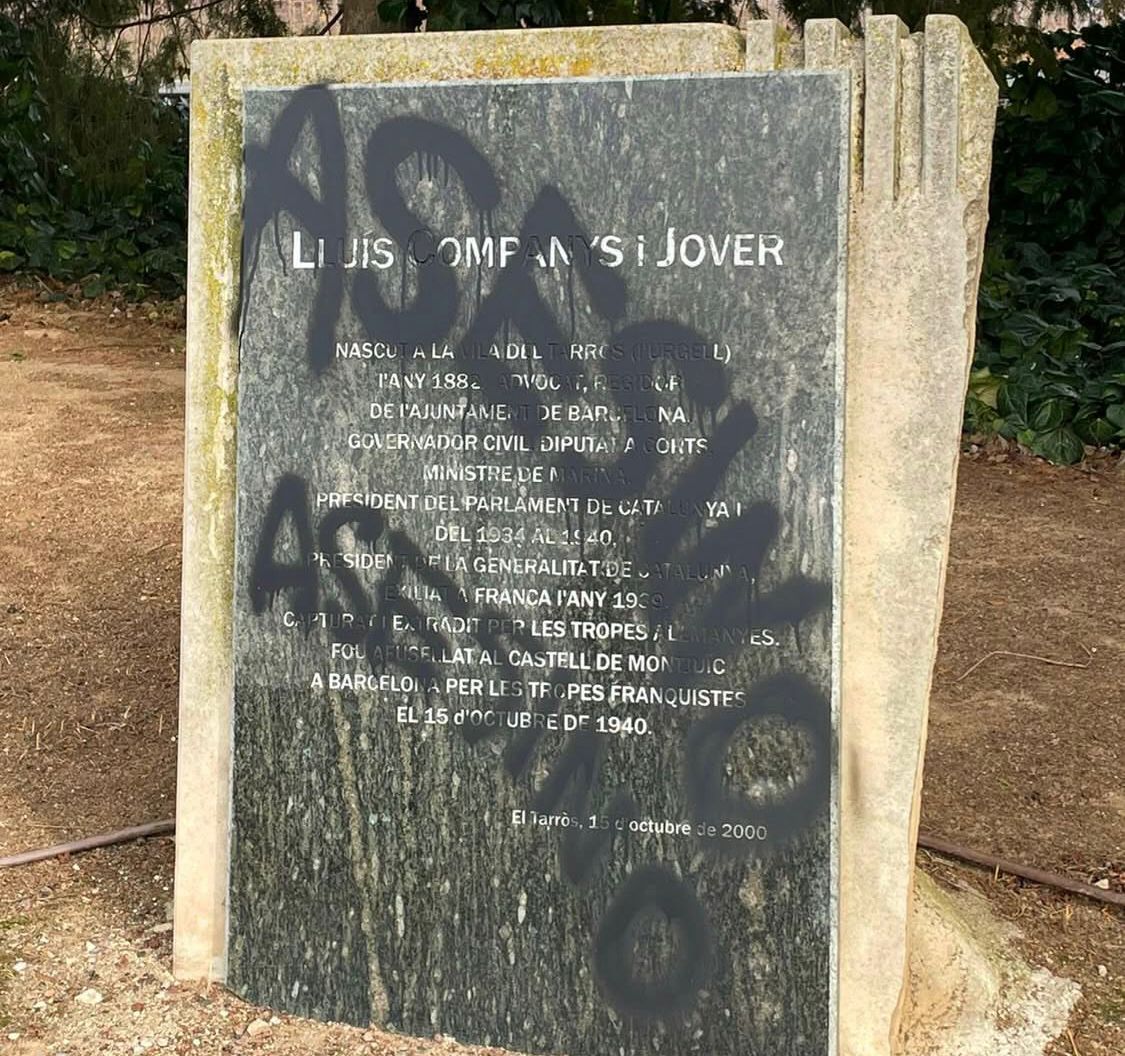 El monument dedicat a Lluís Companys, situat al Tarròs, localitat natal del que va ser president de la Generalitat de Catalunya (1934-1940), ha tornat a ser objecte d’un atac vandàlic. En aquesta ocasió, han aparegut pintades amb la paraula ‘asesino’ sobre la placa que explica la seva biografia.