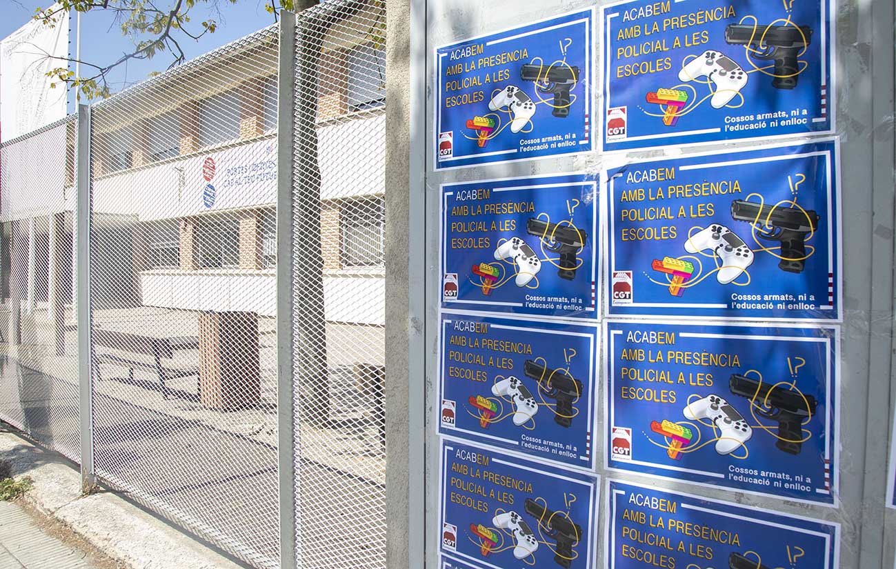 La prova pilot de la Generalitat per desplegar agents de paisà dels Mossos d’Esquadra en instituts de Catalunya, incloent sis centres de Lleida, es va posar ahir en marxa enmig de les crítiques de la comunitat educativa, que continua denunciant falta d’informació. A més, els centres lleidatans que participen en el pla consultats per NOVA TÀRREGA van informar que cap agent no va acudir en el marc del pla per vetllar per la convivència. A Tàrrega i Bellpuig, mentrestant, les façanes dels instituts Manuel de Pedrolo, Alfons Costafreda i Lo Pla d’Urgell van aparèixer amb cartells del sindicat CGT en els quals es poden veure pistoles i un comandament d’una consola amb la frase Acabem amb la presència policial a les escoles.