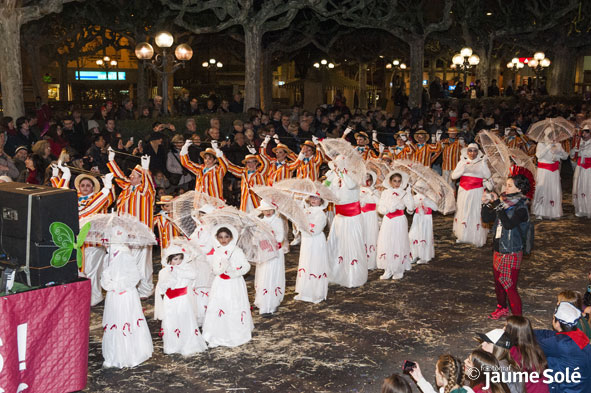 Els participants van valorar molt positivament l'estrena del nou lloc de sortida de la rua de dissabte a la tarda. situat al pàrquing de l'estació de trens amb molt més espai i més preparat per a l'espectacle inaugural de la Tifa del Teatre, la temàtica escollida aquest any. La rua va recórrer pel carrer Sant Pelegrí, la plaça del Carme i el carrer Agoders fins arribar a la plaça Major, on hi va haver un ple absolut durant el discurs del Rei Carnestoltes, que finalment es va celebrar en una cistella elevadora, atès que l’Ajuntament havia decidit no cedir el balcó de la casa consistorial per pronunciar-lo.