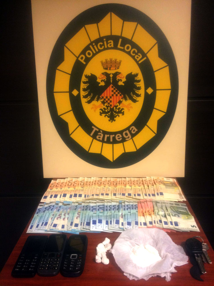 Quan els agents es disposaven a escorcollar el vehicle i els dos homes, un d’ells va fugir corrent i els agents van iniciar una persecució a peu durant la qual el fugitiu llençà unes petites bosses de color blanc. Una vegada interceptat, es va detenir l’home, qui oferí resistència en tot moment agredint els agents. Llavors es comprovà que duia 6 petites bosses de cocaïna i una bossa més gran de cocaïna en roca no manipulada. Al mateix temps, es va detenir l’altre home, conductor del vehicle. Es comissaren 20 grams de cocaïna i 2.000 euros entre els dos detinguts, els quals es traslladaren a la comissaria dels Mossos d’Esquadra a Cervera per passar a disposició judicial. També es comissaren telèfons mòbils i es precintà el vehicle. Els agents de la Policia Local que participaren en les detencions foren atesos al CAP de Tàrrega per lesions lleus.