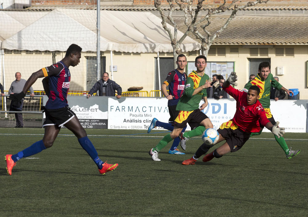 Els gols de Sylla, Jorba i Gallardo, aquest de penal, van conduir la UE Tàrrega a la victòria en un camp tan difícil i complicat com el del Cervera, cosa que encara dóna més mèrits als blaugrana, que van tornar a jugar un altre partit a un gran nivell superant al contrari en totes les parcel·les i en totes les fases del joc. Tots van estar molt bé, però seria injust no destacar el gran treball de tot l’equip, el jugar com un autèntic equip, deixant de banda el lluïment personal en benefici del grup, sense cap mena de dubte i un cop més, això va ser i és més que lloable. D’aquí la victòria, treballada i merescuda, perquè l’equip blaugrana sempre va ser superior a l’equip local, controlant en tot moment la situació del joc i del partit.