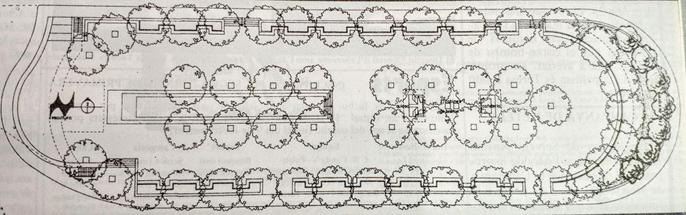 A l'altre extrem de la plaça, preveia tancar el Pati pel costat nord, amb la col·locació d'un banc circular continu al costat de l'avinguda de Catalunya i s'enjardinava aquest tram fins a la carretera amb parterres que havien de limitar amb una filera de xiprers en forma de corba.