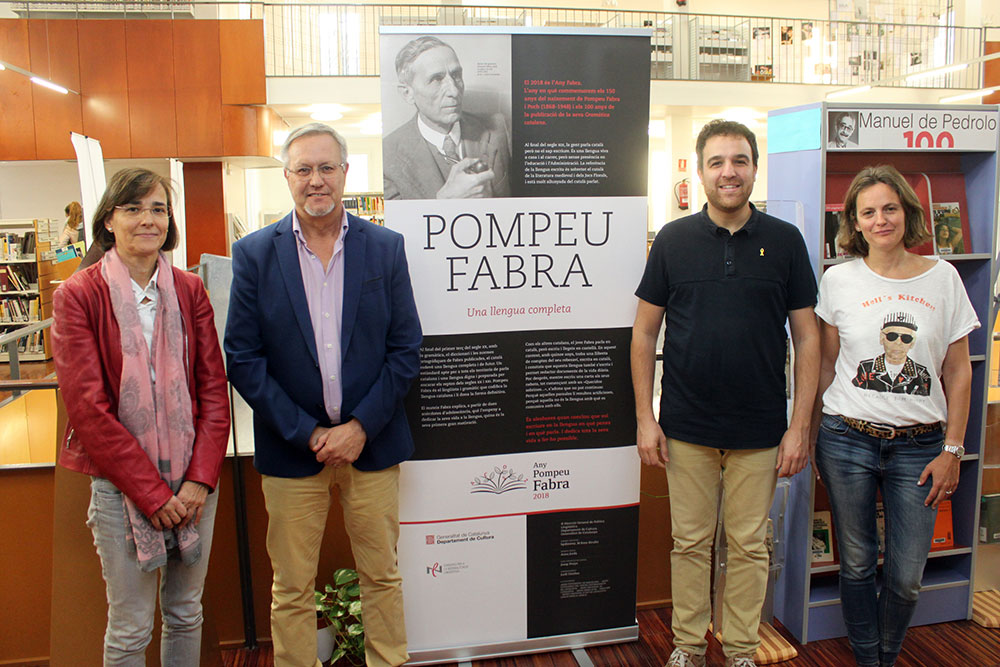 La Biblioteca Comarcal de Tàrrega exhibeix fins al 30 d’octubre una mostra sobre la vida i l’obra del filòleg Pompeu Fabra (1868-1948) i la seva aportació cabdal a la llengua catalana. Es tracta d’una exposició itinerant produïda per la Direcció General de Política Lingüística (DGPL) i gestionada pel Consorci per a la Normalització Lingüística (CPNL). La iniciativa s’emmarca dins l’Any Fabra, amb què es commemora el 150è aniversari del naixement del lingüista i els 100 anys de la publicació de la seva “Gramàtica Catalana”. El president del Consell Comarcal de l’Urgell, Salvador Bonjoch, i el regidor de Cultura, Raül Palacios, han presentat l’exposició acompanyats de Teresa Arrufat, tècnica del CPNL, i Emma Novell, directora de la Biblioteca Comarcal de Tàrrega (vegeu fotografia).
