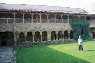 Retratava com ho havia fet l'any 1913 Josep Salvany Blanch al claustre del qual fou monestir de Santa Maria de Gualter, del qual ens diu la descripció tècnica: "Estructura amb coberta de fusta i amb uns arcs sostinguts per curtes columnes amb uns capitells decorats amb temes vegetals, aquesta part de l'edifici avui l'ajuntament de la Baronia de Rialb, i de la Parròquia de Gualter."